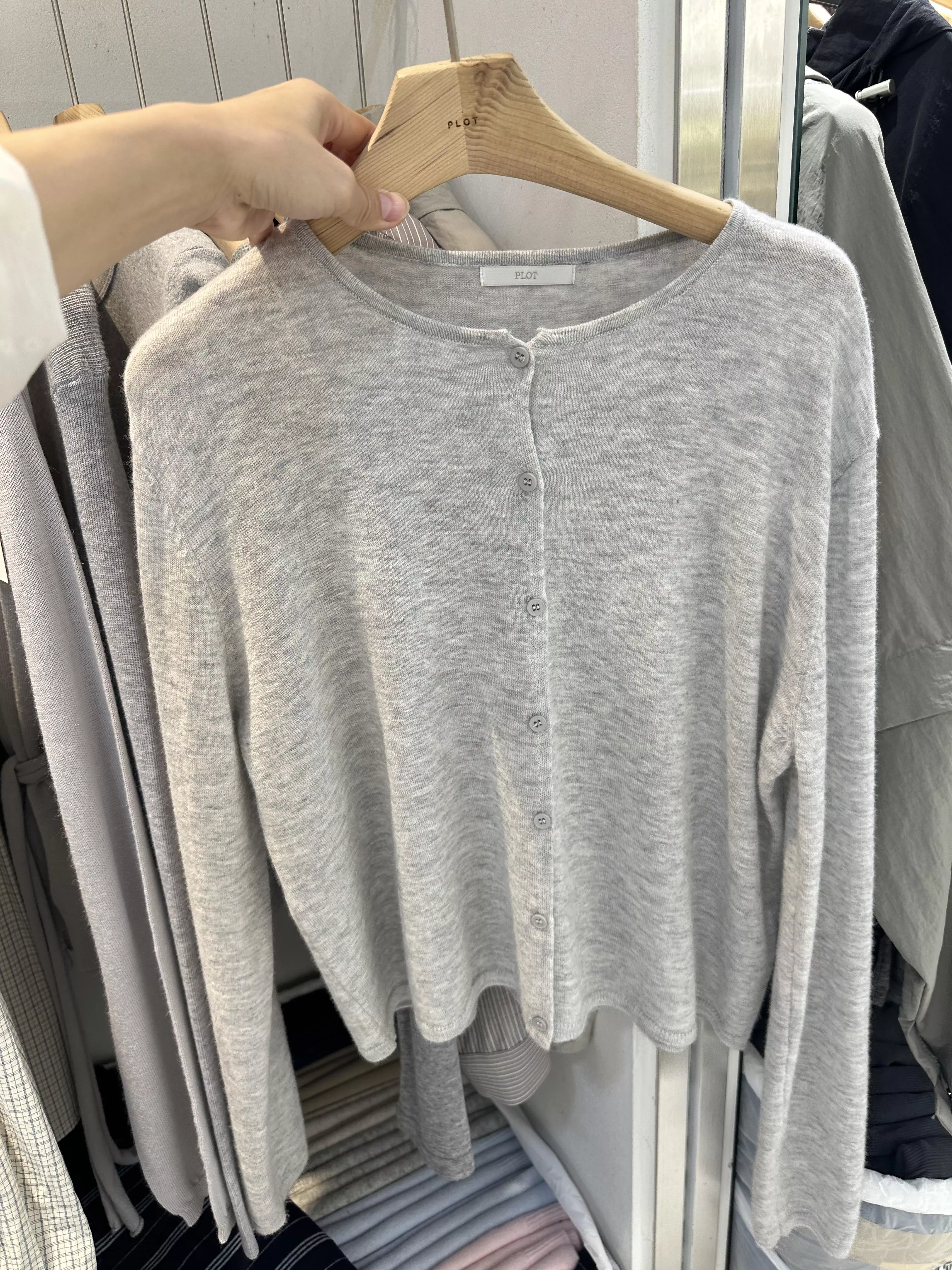 👉 一件 100% 羊毛排扣針織,價格卻比想像中親民,柔軟順身、完全沒有毛衣的厚重感,日常隨手披上就很有氛圍。