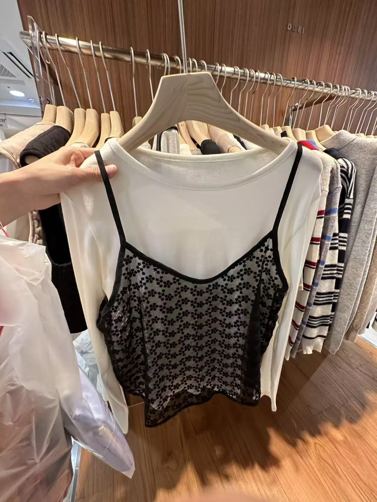 - 疊穿背心、針織小罩衫或吊帶蕾絲上衣更韓味。