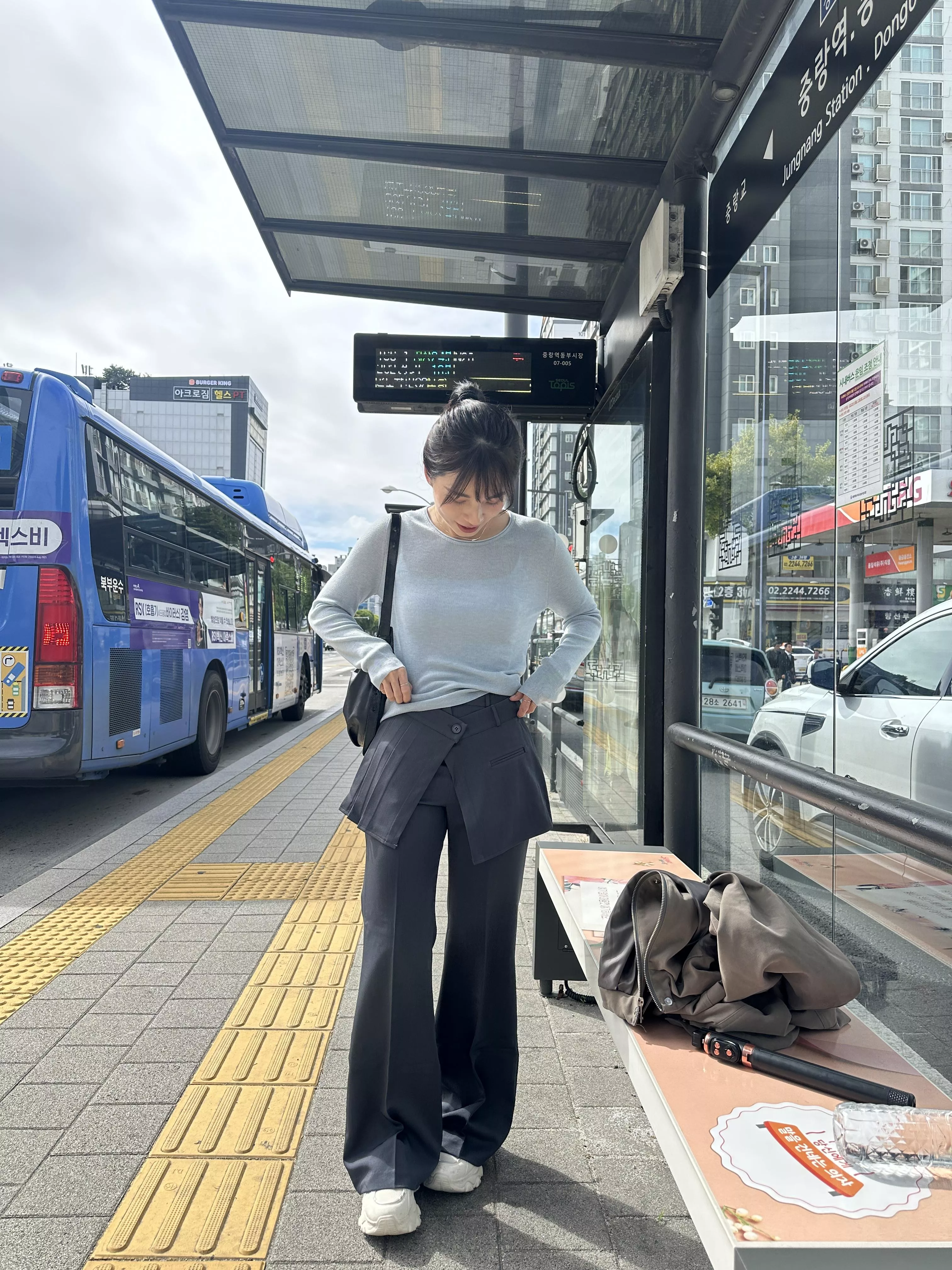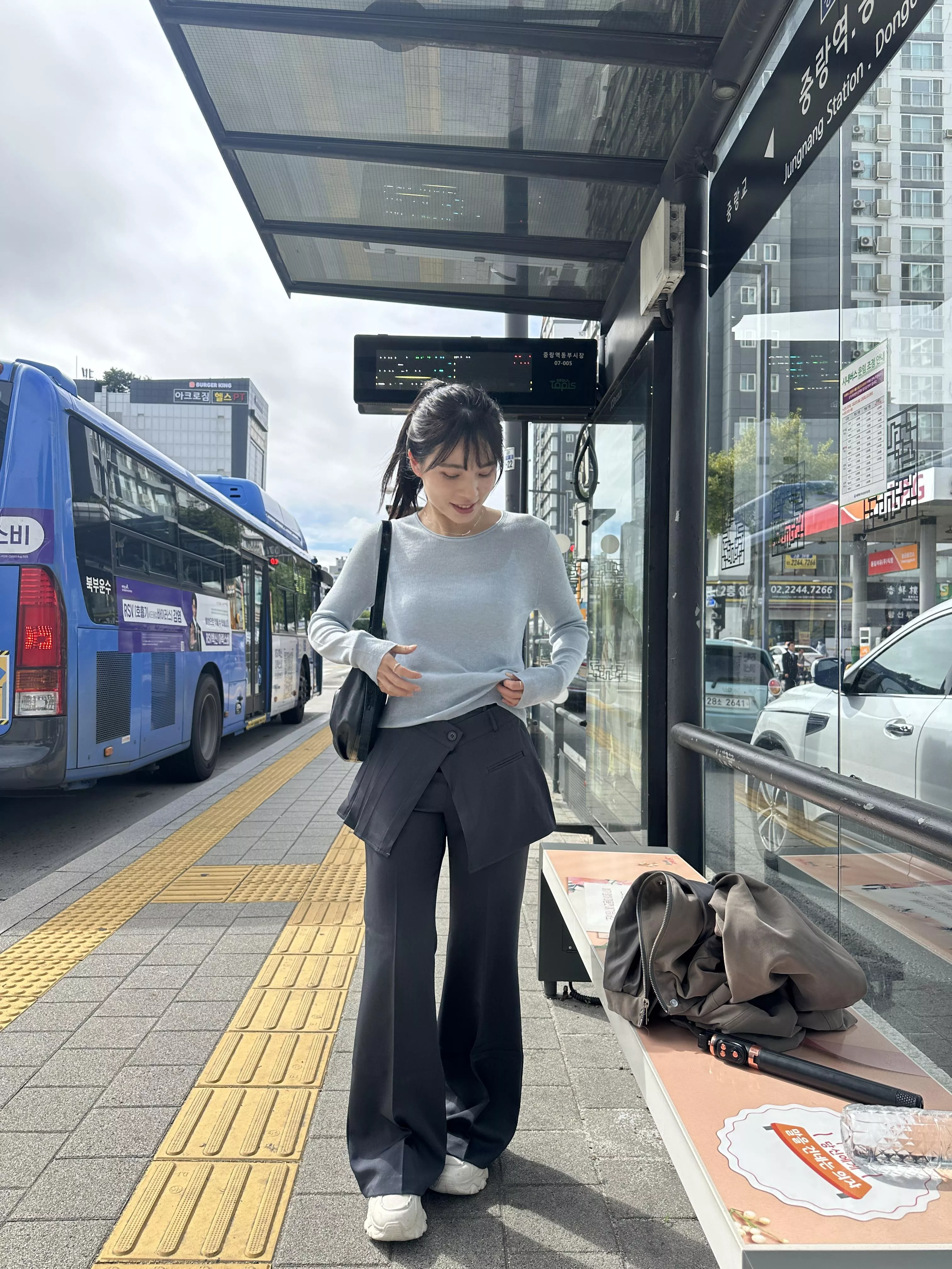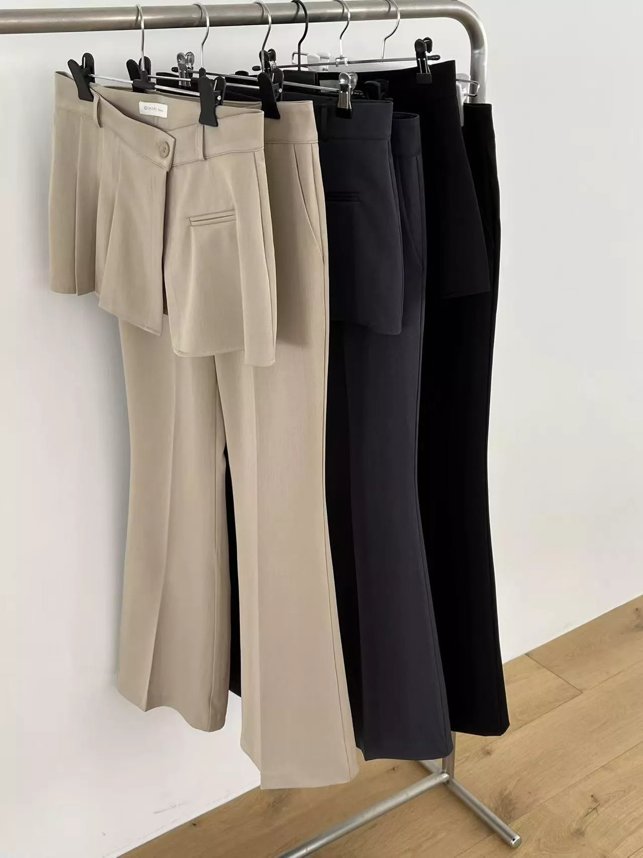 👉 一件褲子搭出裙裝的層次感,隨性又俐落,褲管小喇叭剪裁跟雲朵褲一樣超顯瘦!!