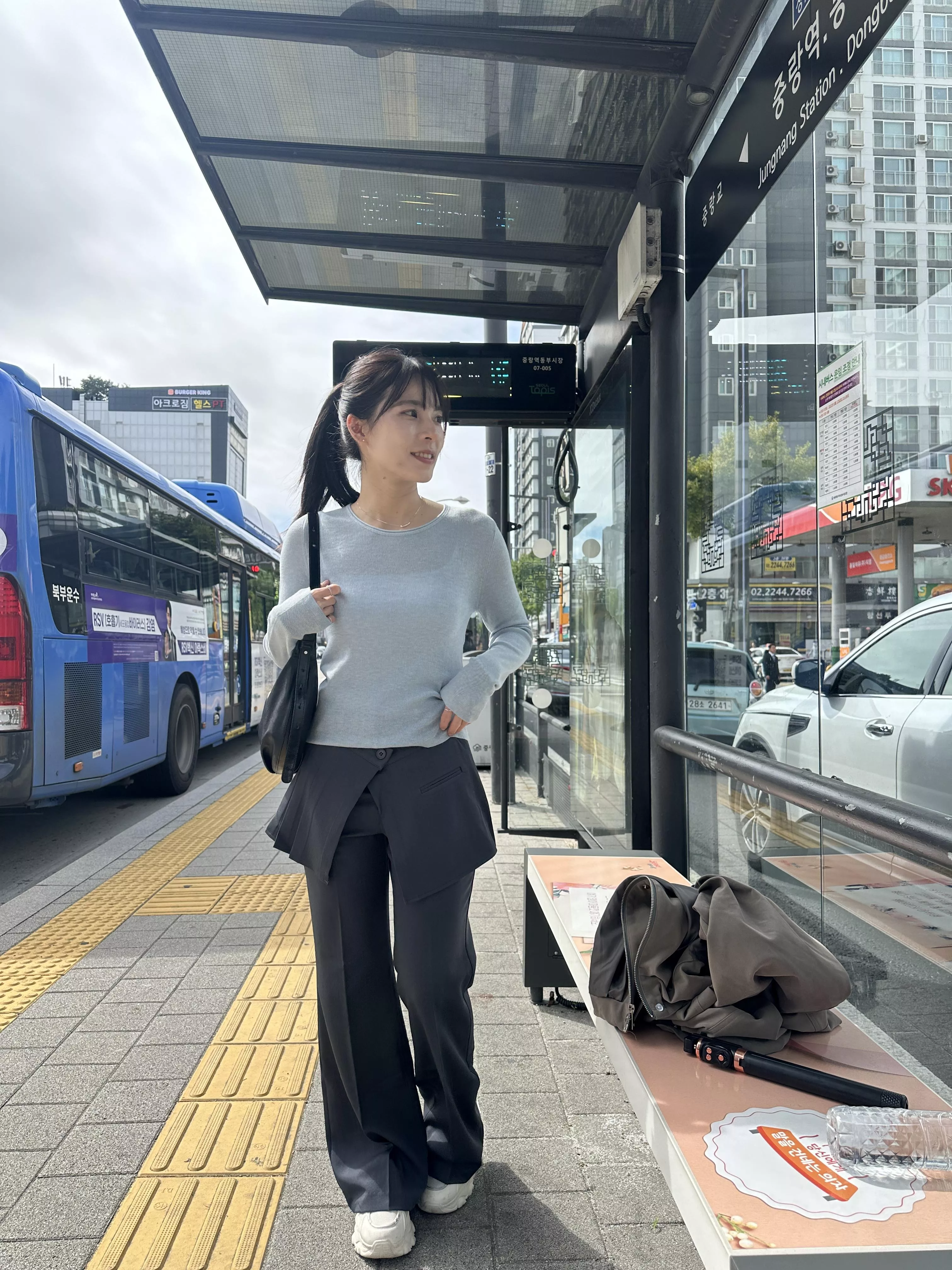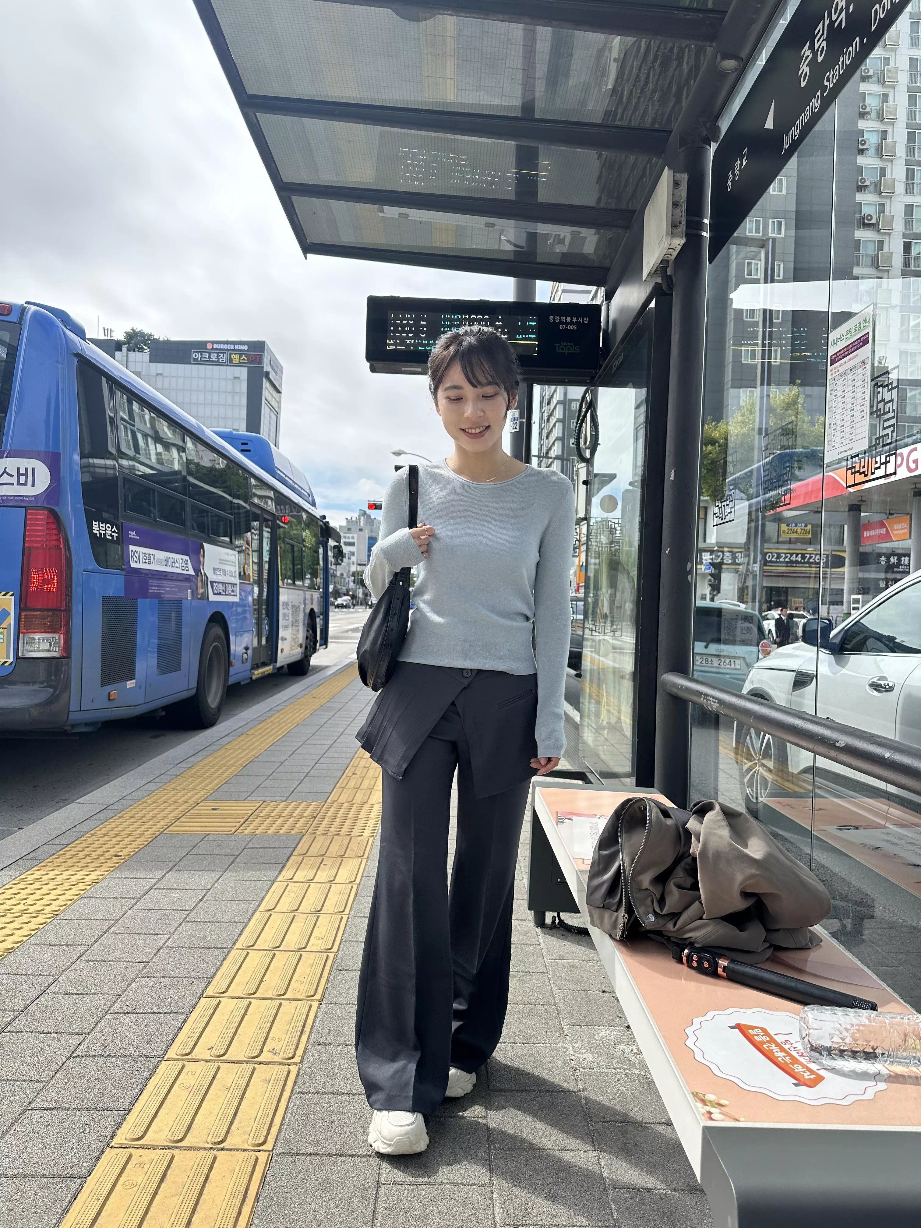 ✔ 材質:挺版西裝布料,垂墜感很好,不易皺,日常穿一整天也能保持俐落。