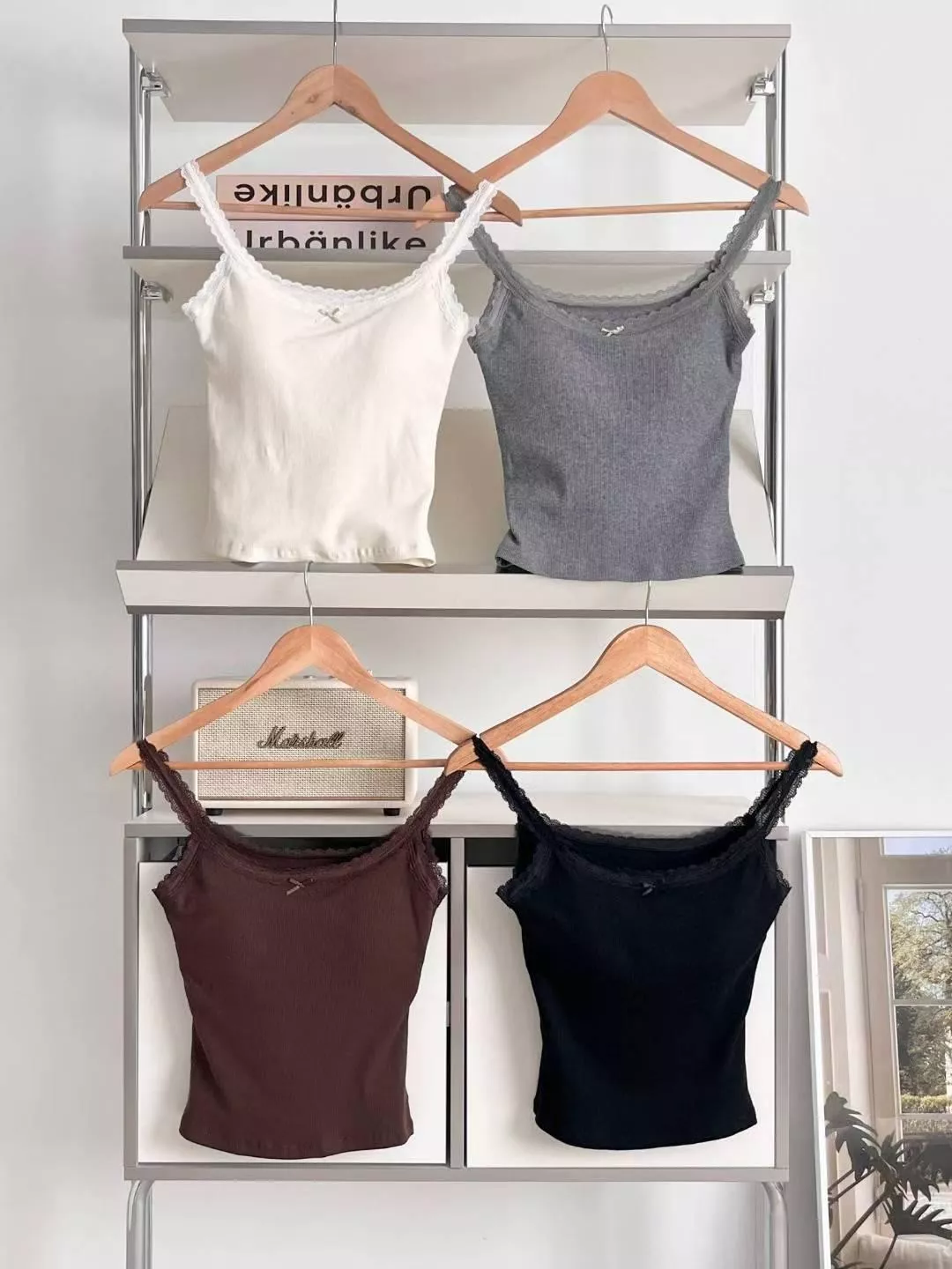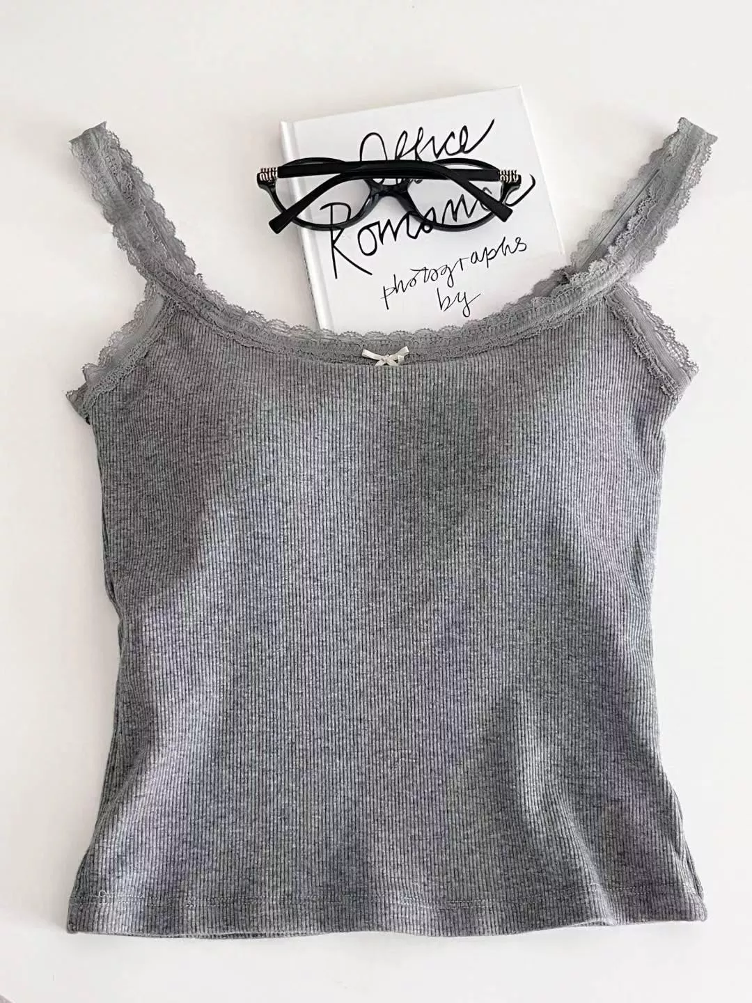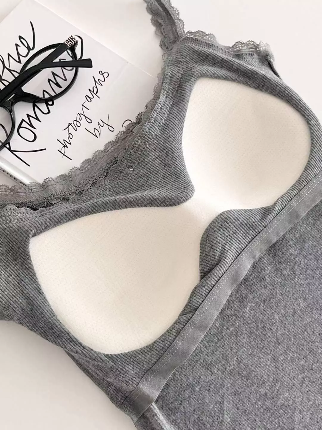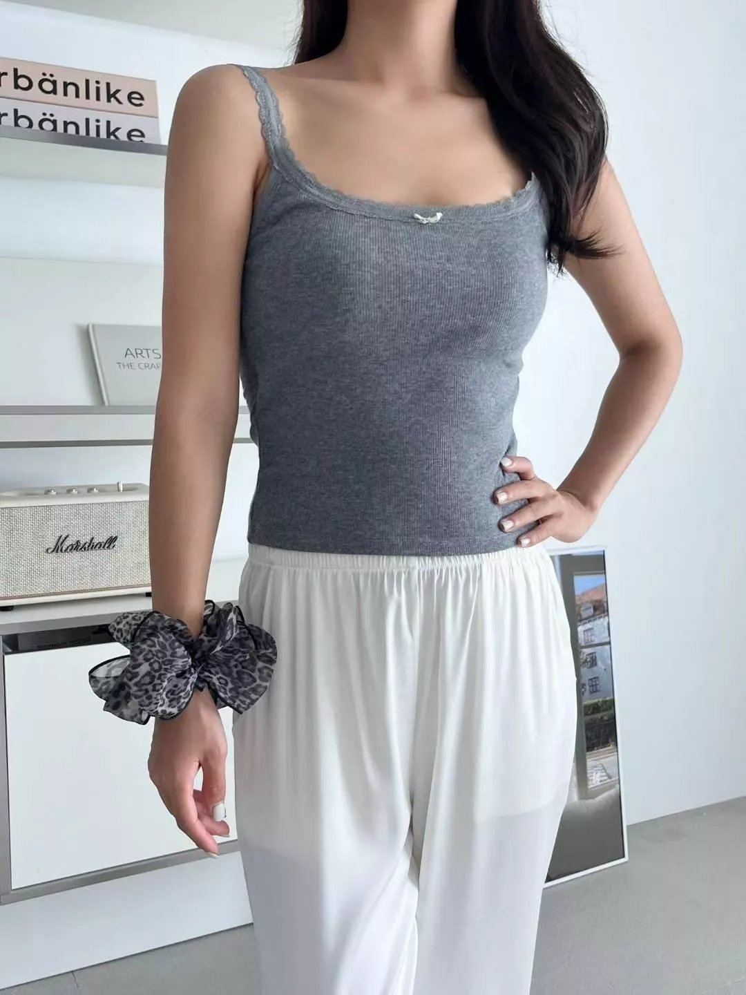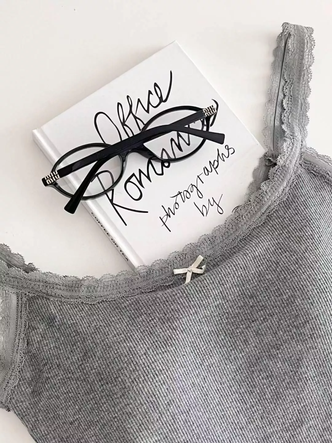 細緻的蕾絲肩帶與領口滾邊,勾勒出自然鎖骨線條,帶一點低調浪漫氣息。