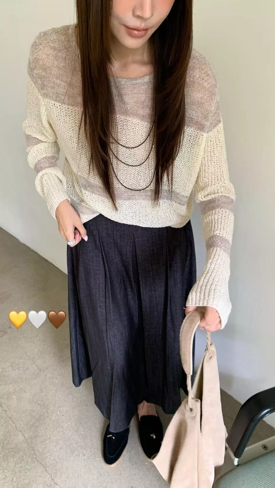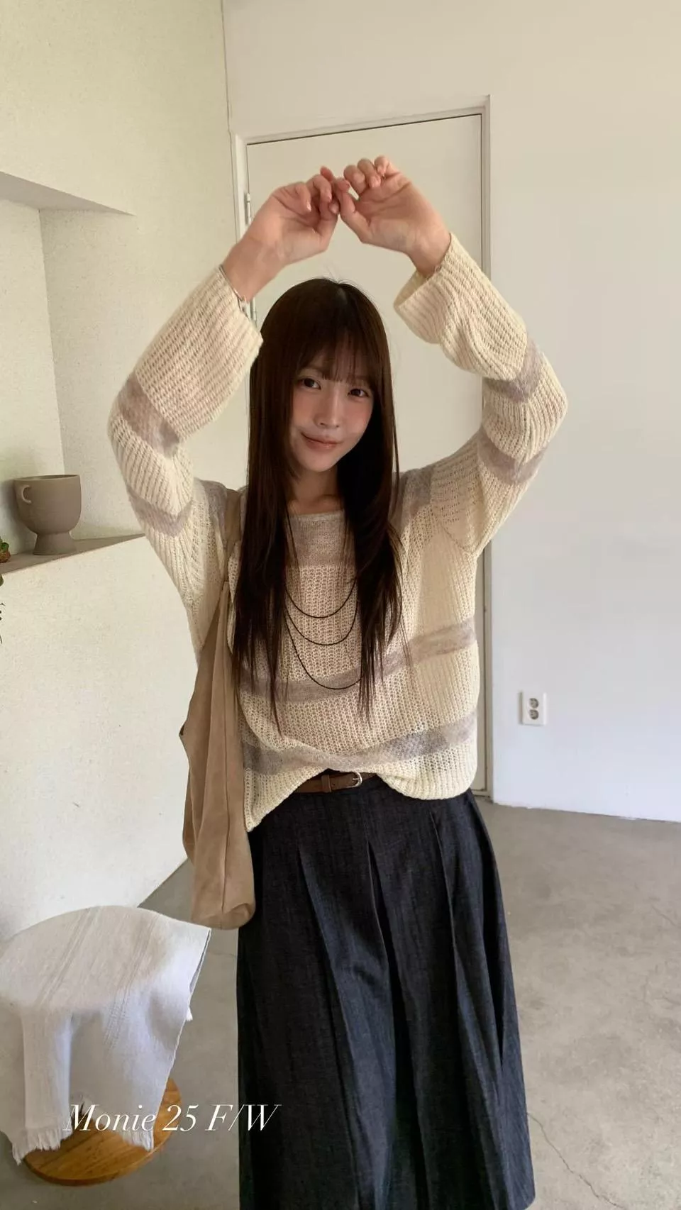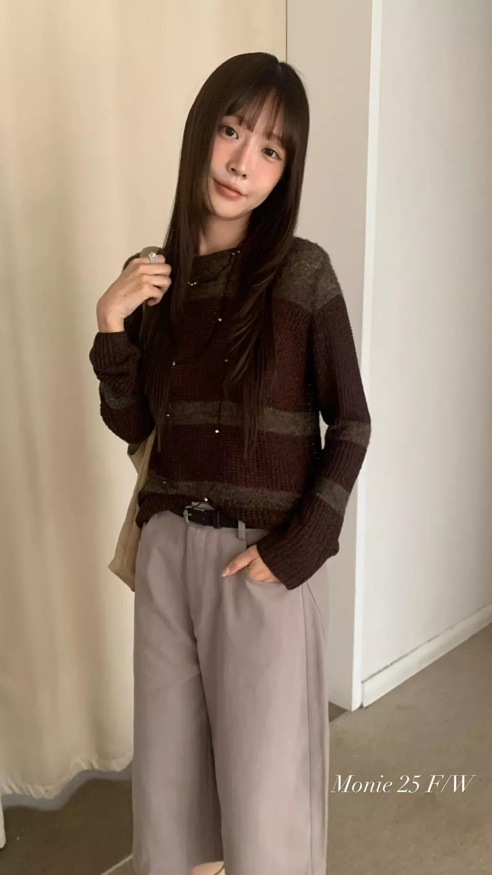 ✔ 設計:雙色混紗條紋交錯,低飽和配色有層次感,簡單就有韓系溫柔氛圍。