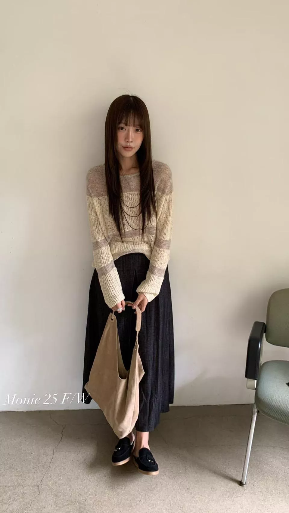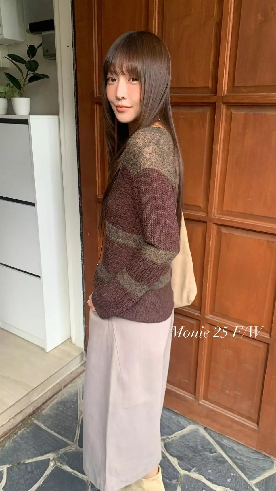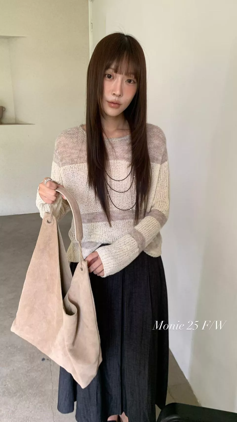✔ 設計:雙色混紗條紋交錯,低飽和配色有層次感,簡單就有韓系溫柔氛圍。