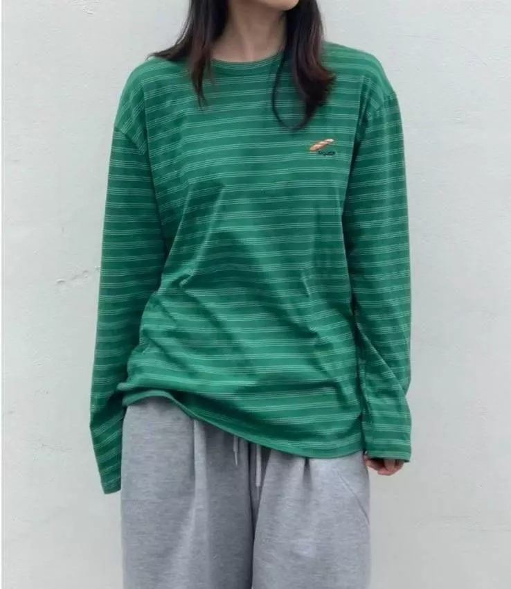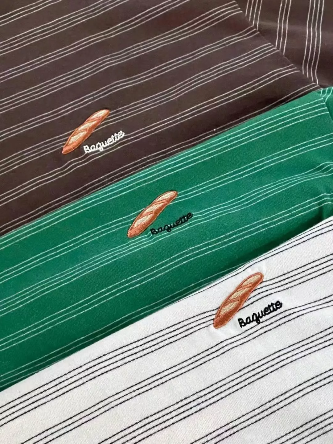 ✔ 設計:經典條紋底色搭配左胸「Baguette」立體刺繡。