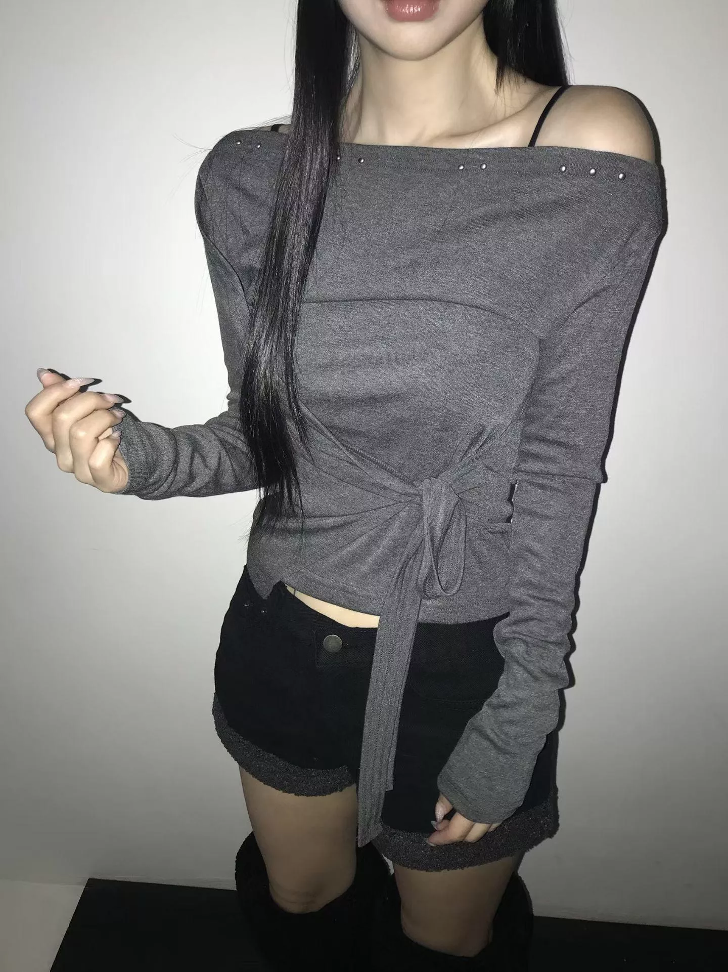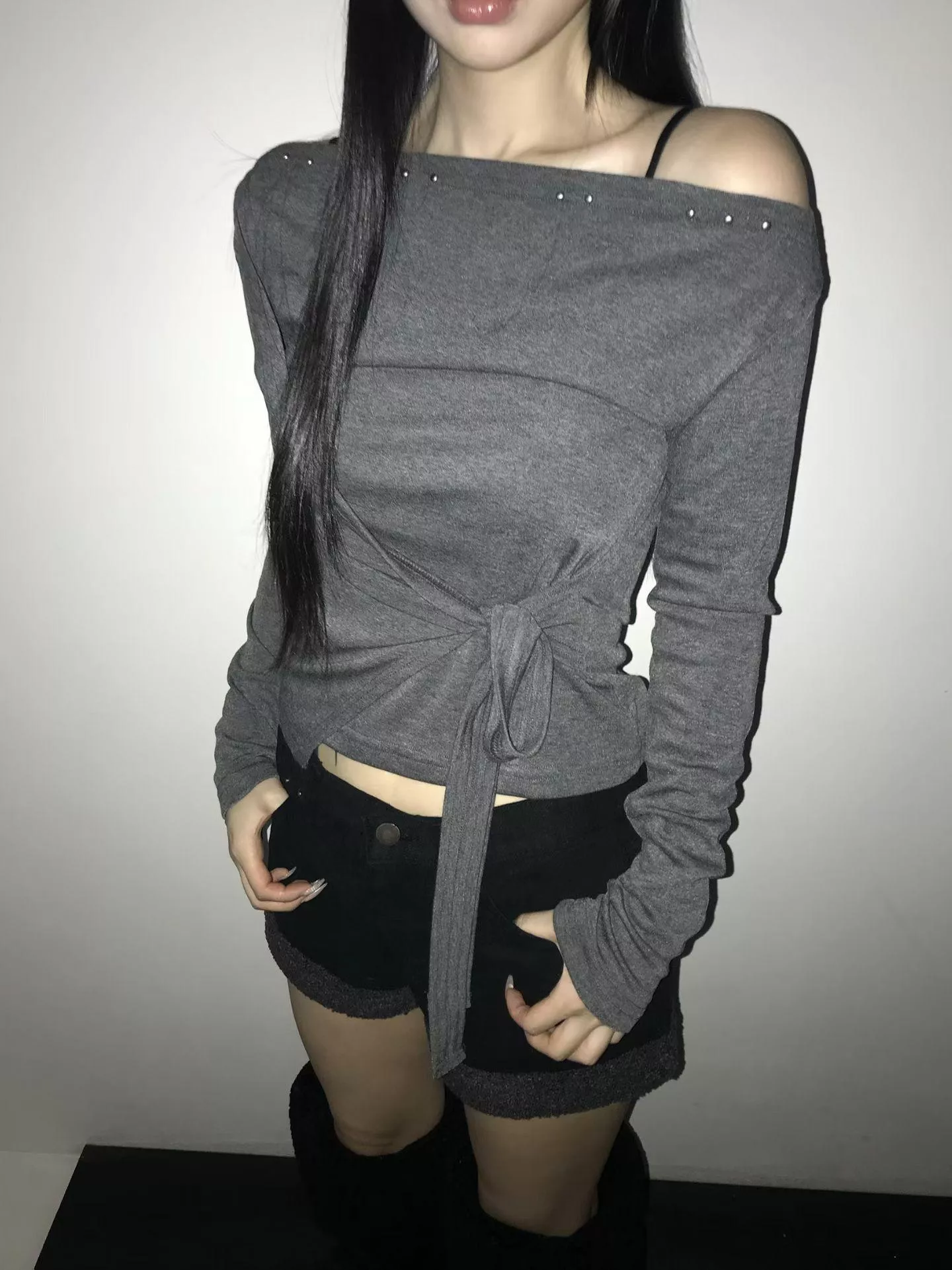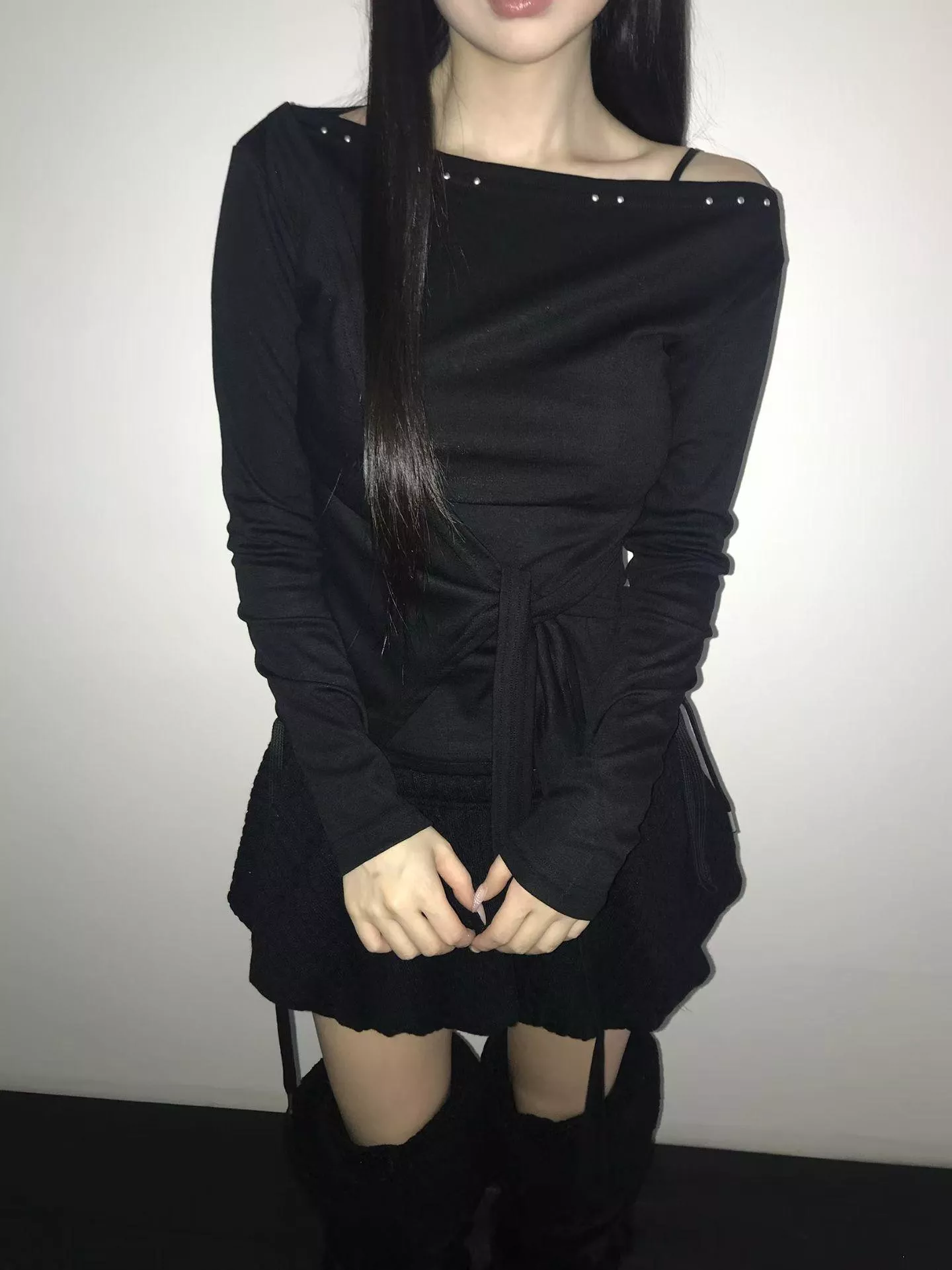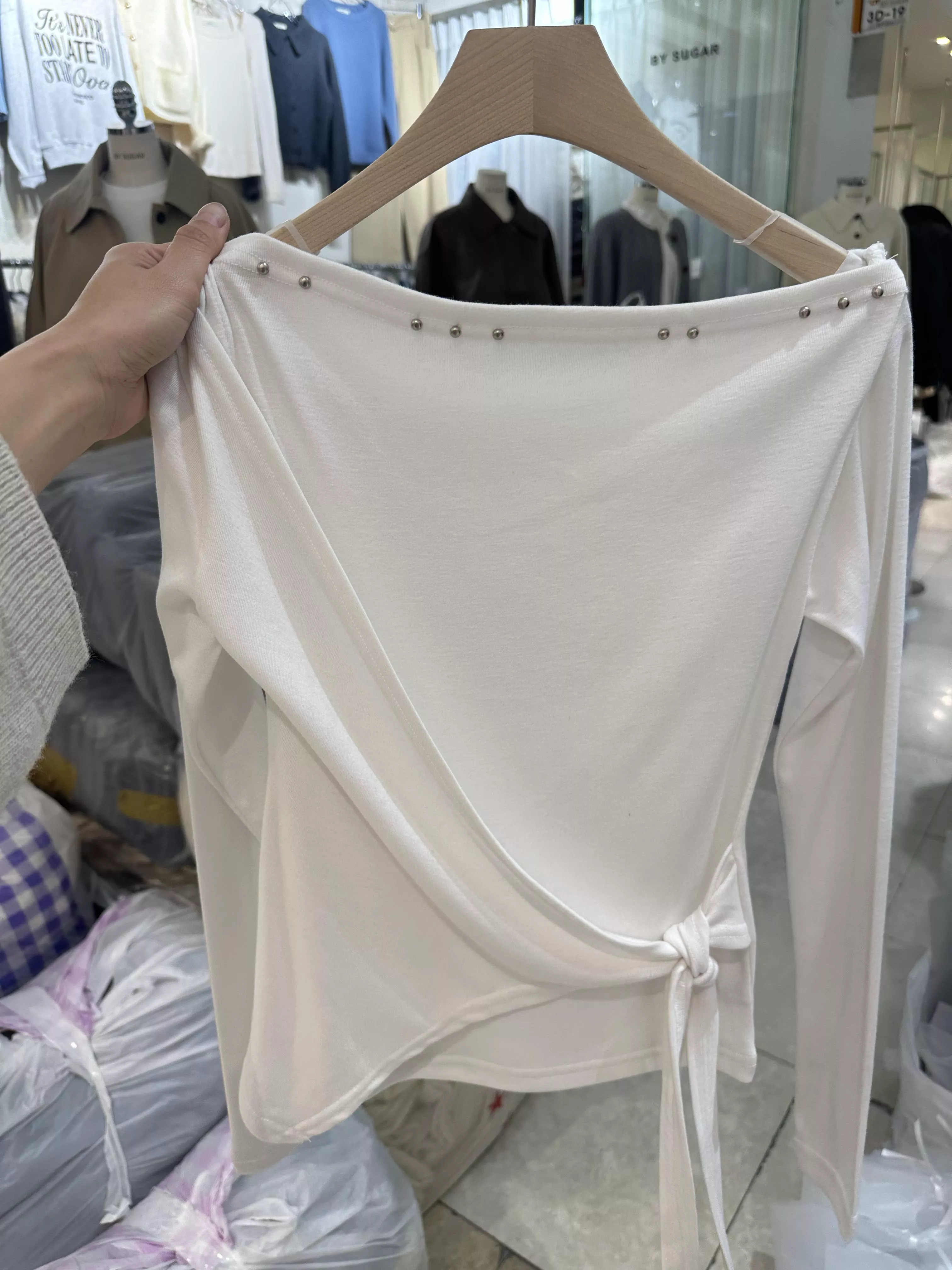 《Lean Light》正韓斜肩卯釘設計上衣