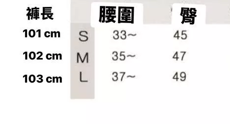 S 腰圍33 臀圍45 大腿圍27 全長101