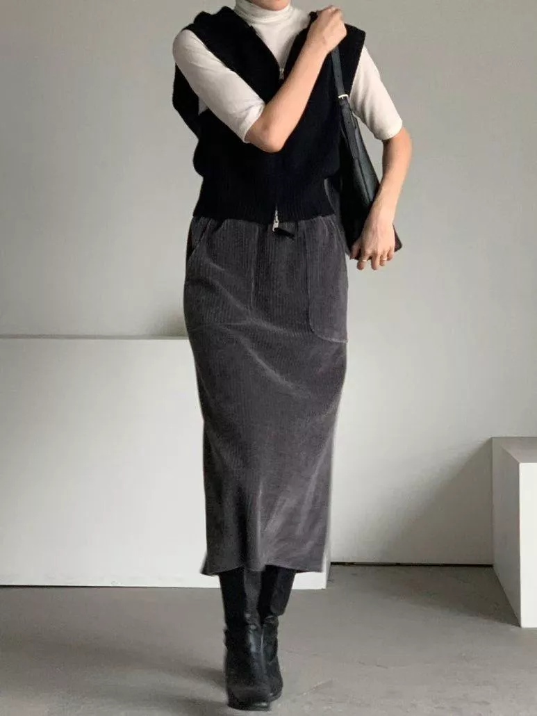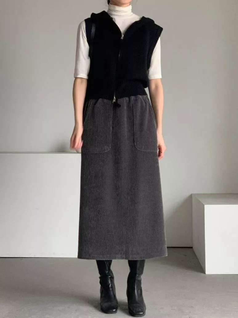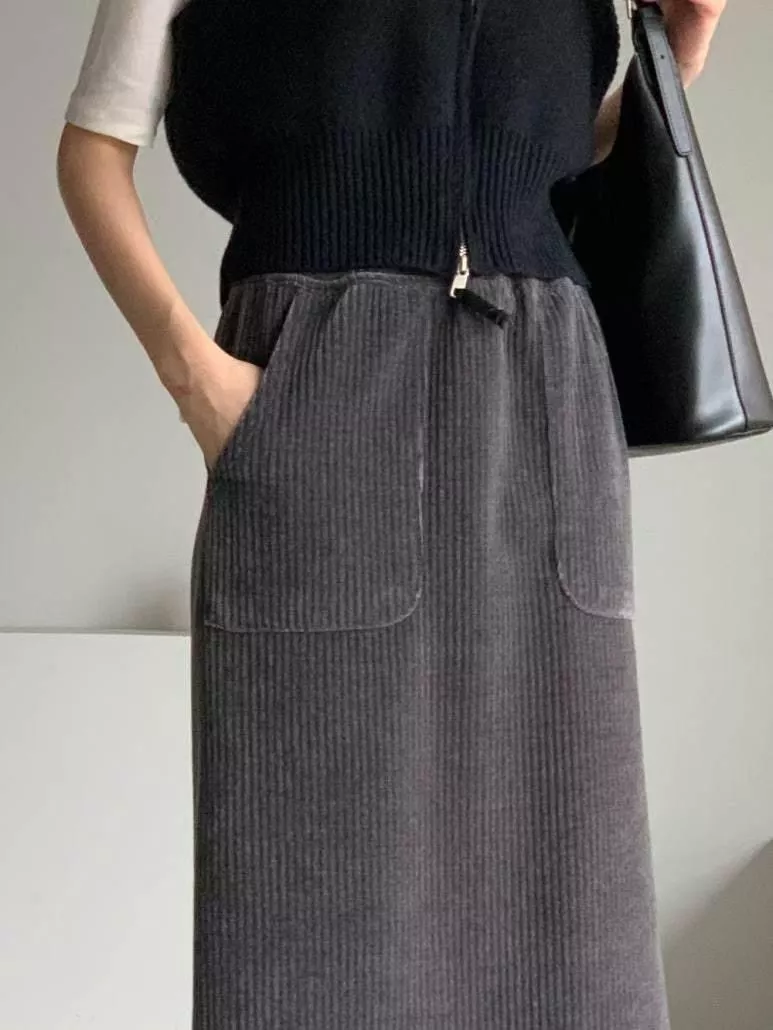 《75%巧克力》正韓燈芯絨口袋裙