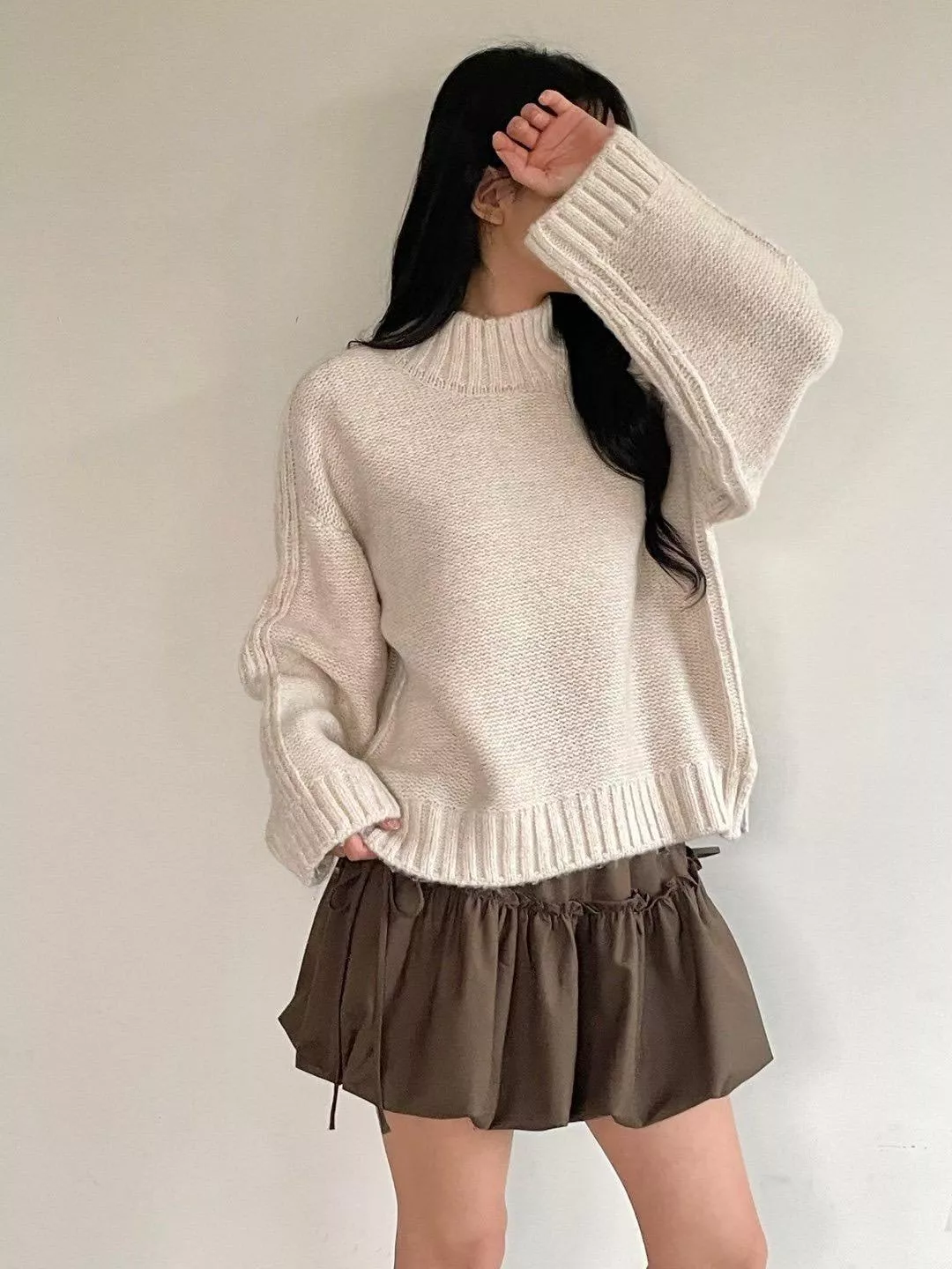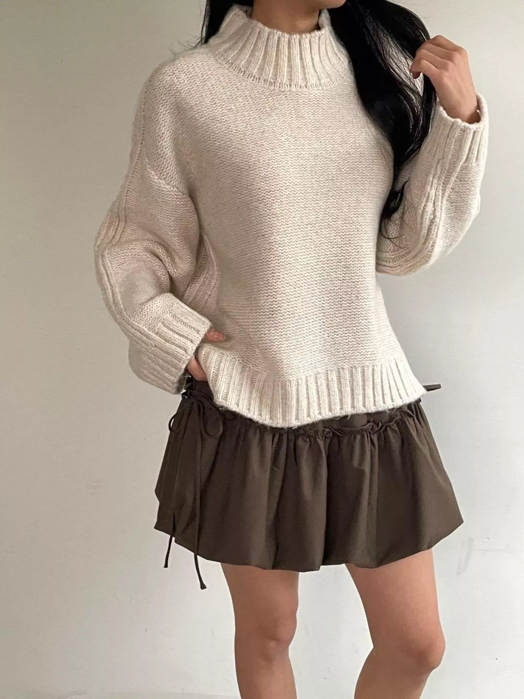 《墨色花瓣》正韓綁帶花苞短裙